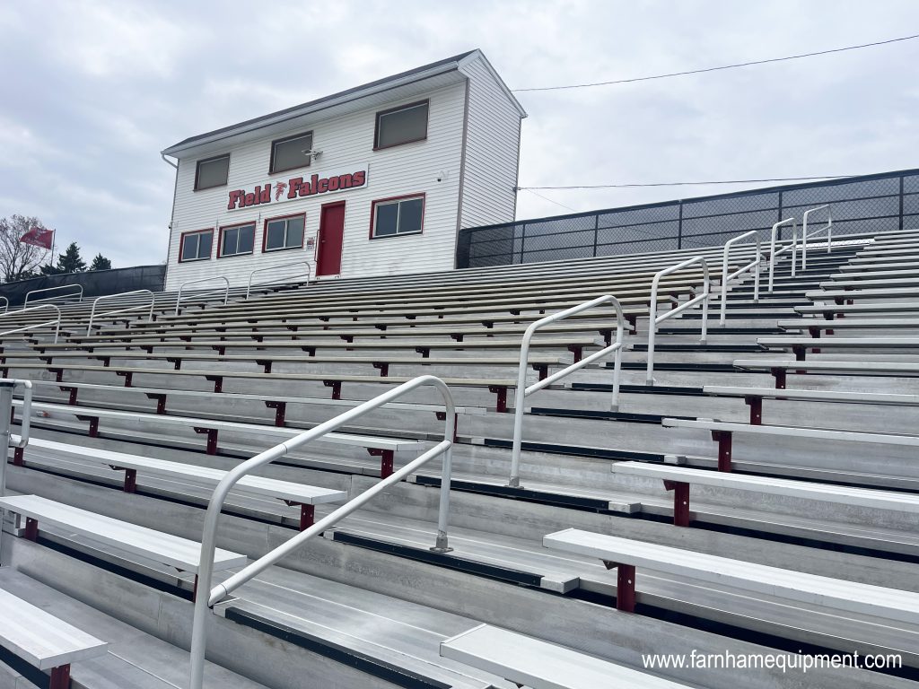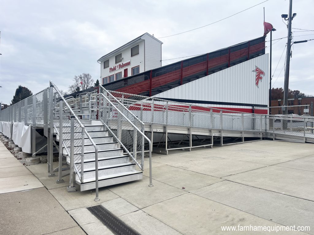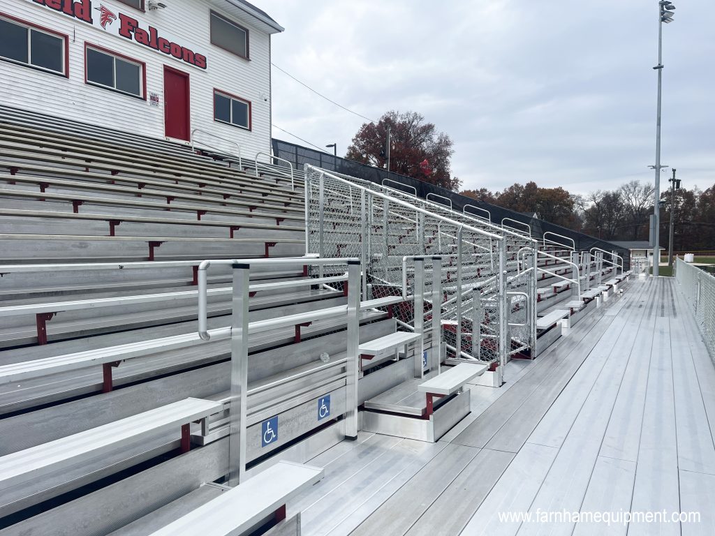 Field High School reached out to Farnham Equipment Company (FEC) for options to make upgrades on its existing high school home grandstands. After much deliberation and multiple options, the school opted for a scope to include a new crosswalk deck with ADA seating, a handicap ramp, a vomitory exit, and two stairs to upgrade the existing stadium bleachers.