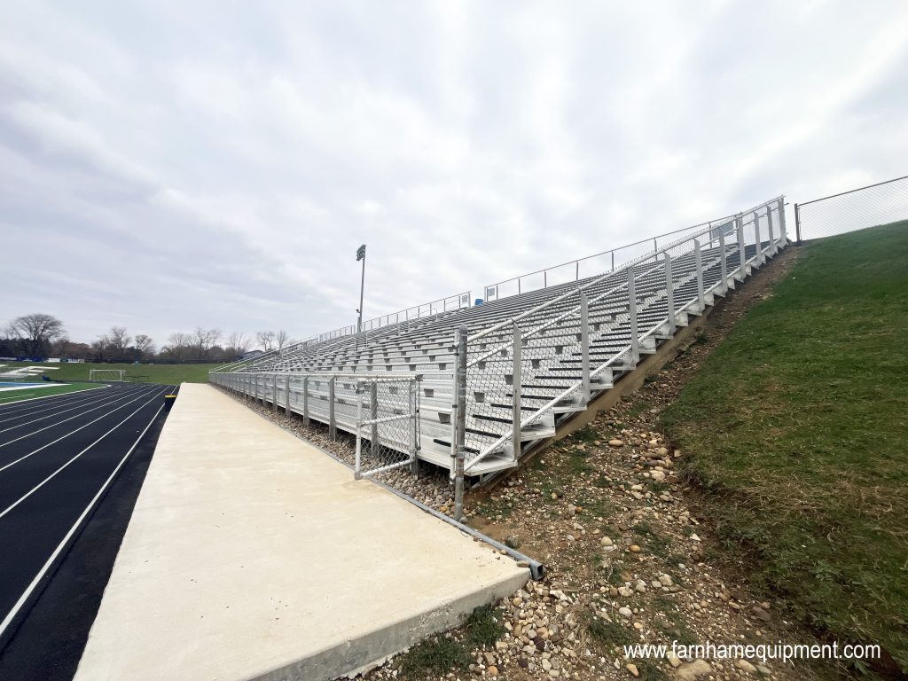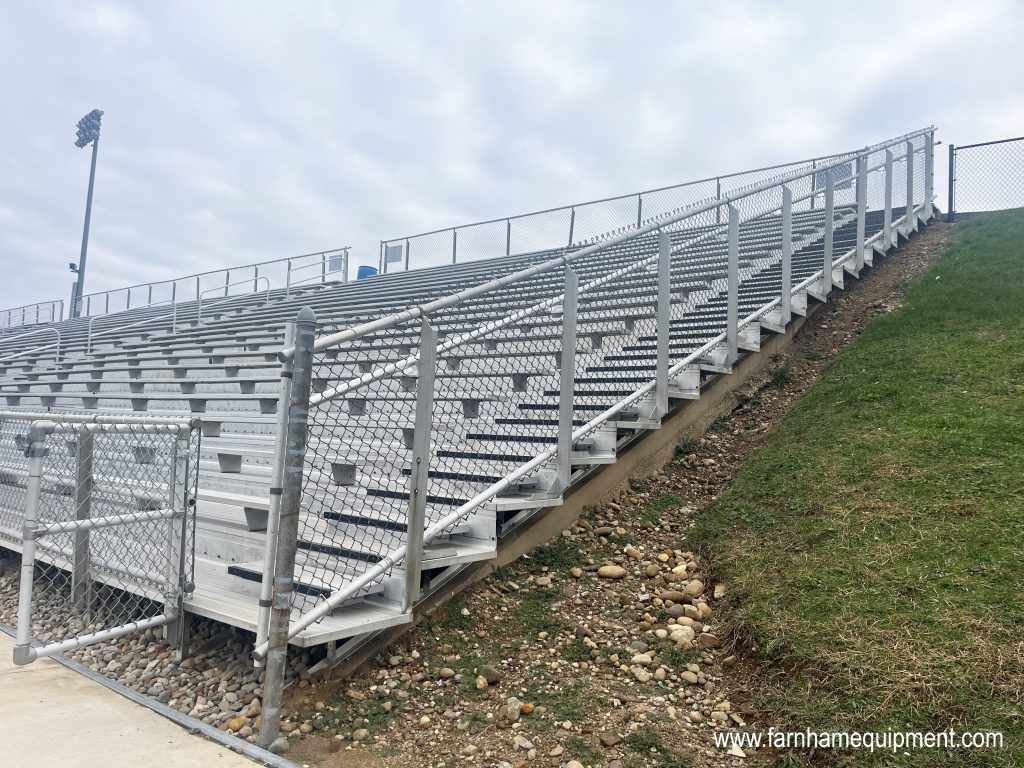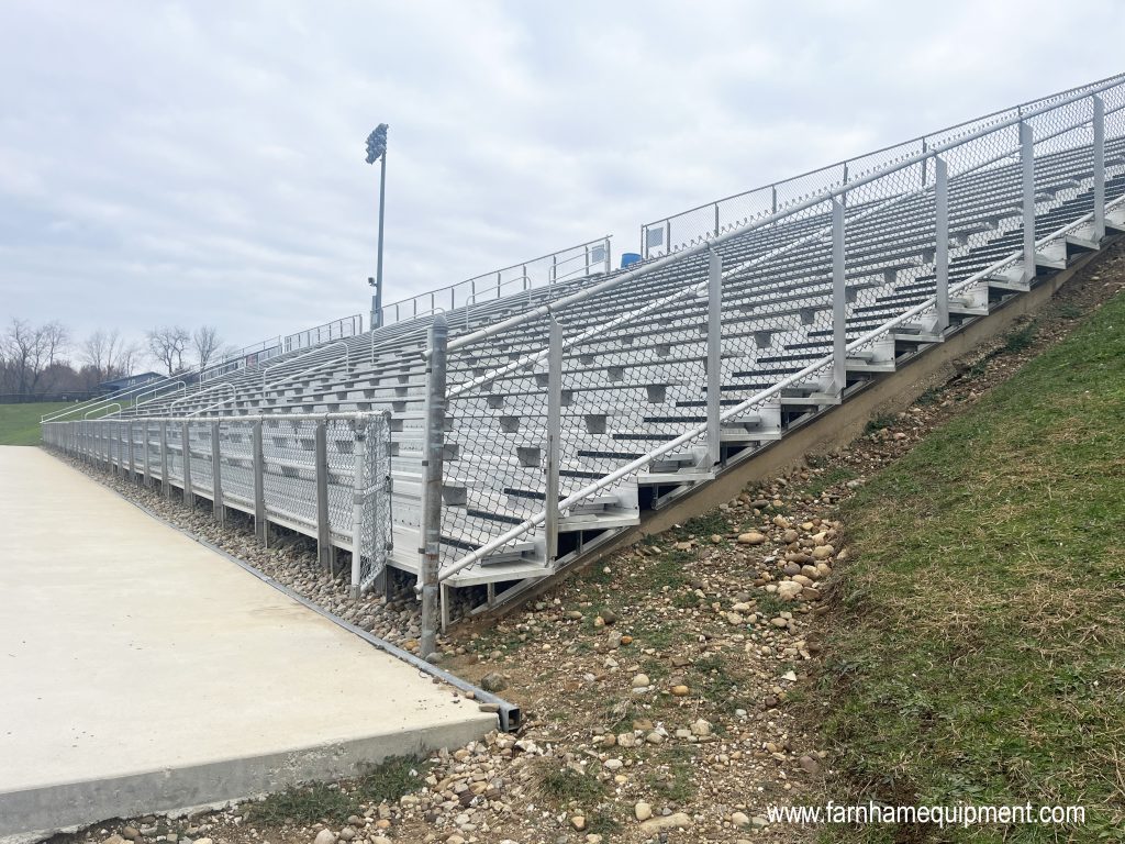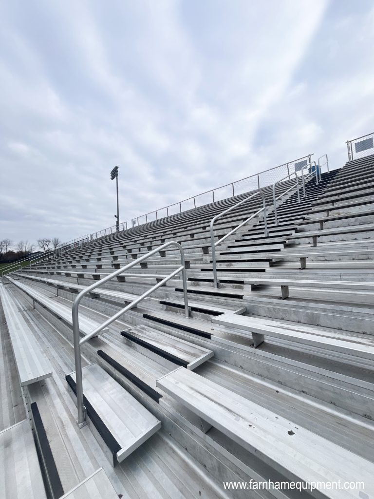 Lake Local High School had collaborated with Farnham Equipment Company (FEC) for several years, most notably on the upgrades of the home outdoor grandstands at Blue Streak Stadium. This project, handled back in 2019, included new aluminum frame structure upgrades, concrete footers, and additional mid-aisle handrails with intermediate aisle steps. The school was thrilled with the outcome of this project, and when it came time to make similar upgrades to the visitors’ side, the district knew exactly who to call.