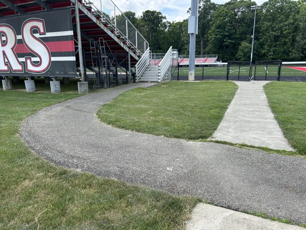 - Adding (1) vomitory on the right aisle of the bleachers with L-shaped concrete pad behind the ADA ramp, located towards the concessions area